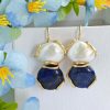 Orecchini ambra baltica, orecchini perle bianche e argento 925 placcato oro, gioielli italiani