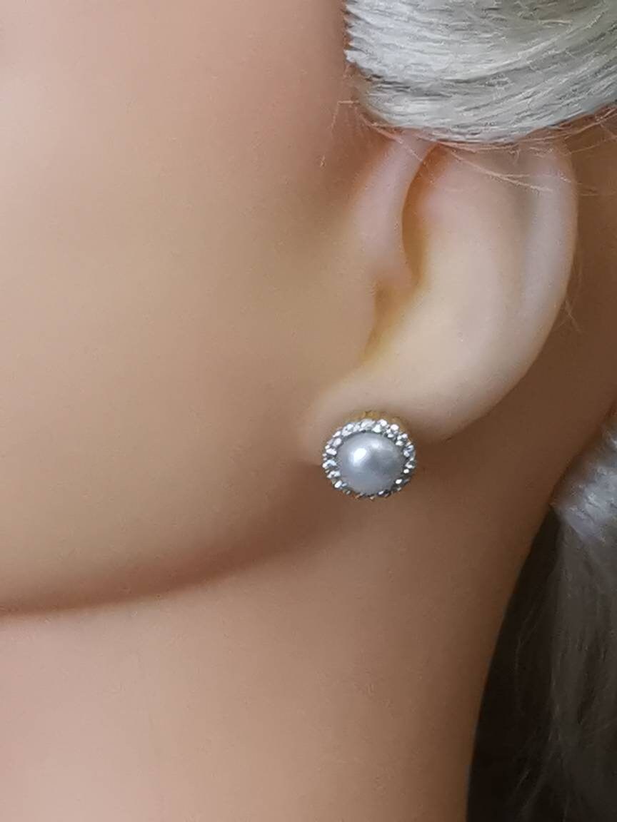Orecchini perle bianche , argento 925 placcato oro con zirconi ,, orecchini sul lobo, gioielli italiani