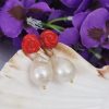 Orecchini rametti corallo rosa naturale e perle bianche barocche , orecchini argento 925 , gioielli italiani