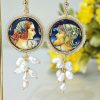 Orecchini piastrelle ceramica Caltagirone con grappolo perle bianche  , orecchini siciliani