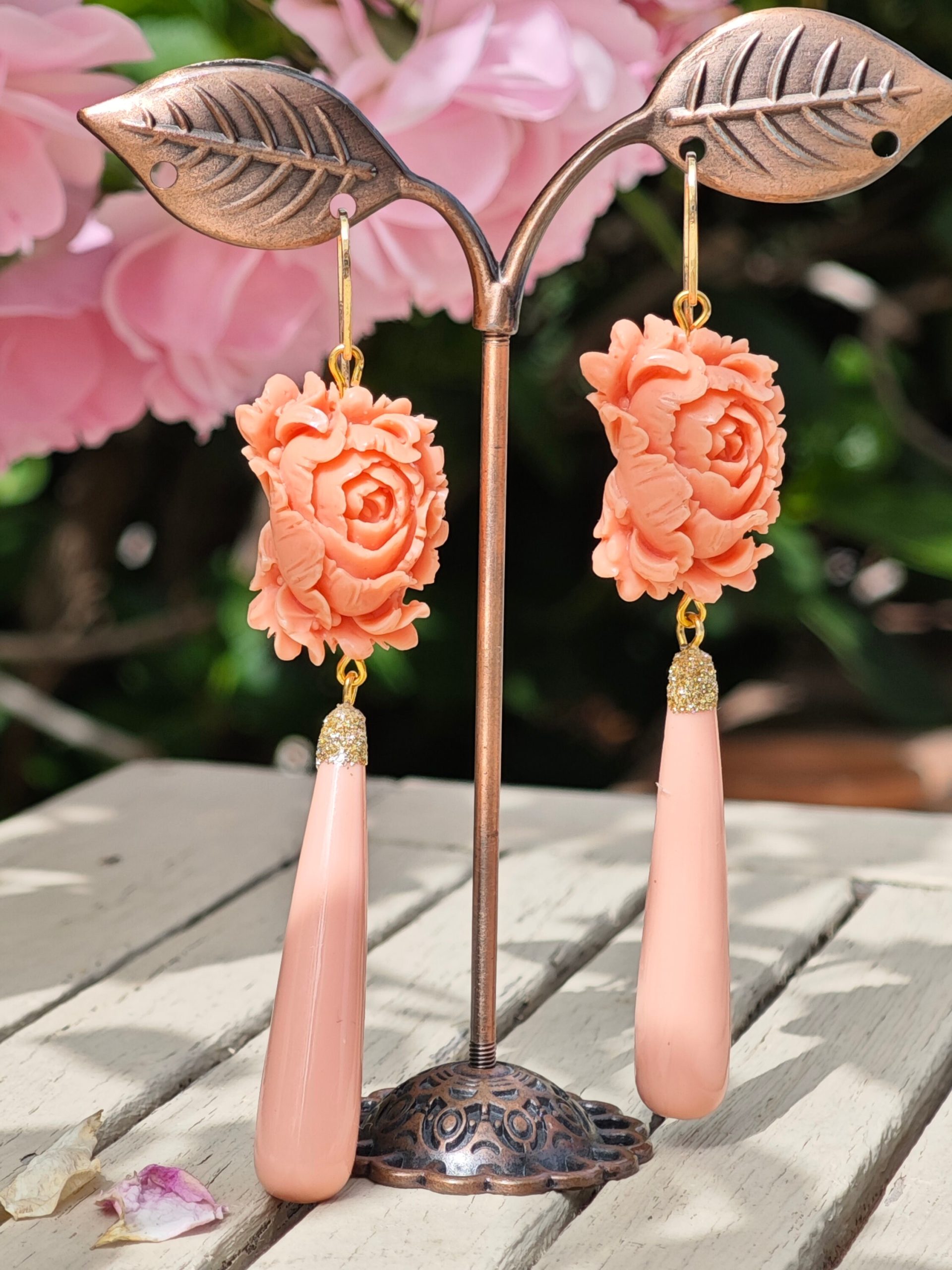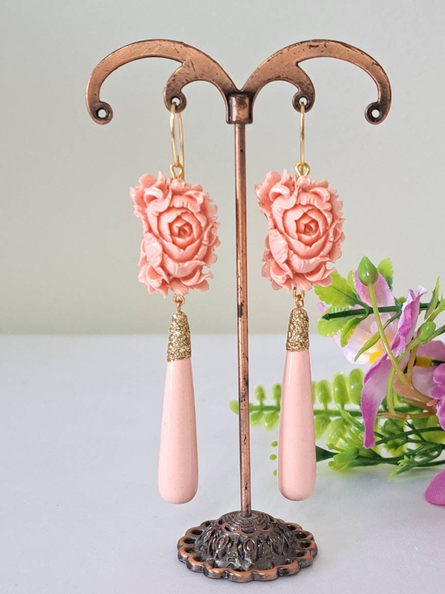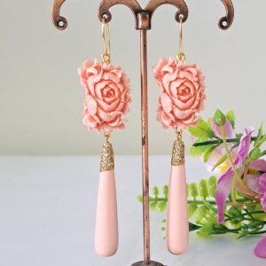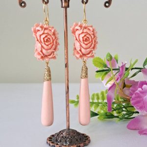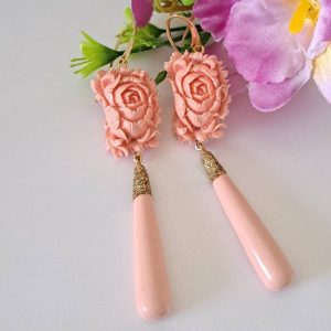 Orecchini rose corallo rosa, orecchini goccia corallo, orecchini argento 925 , gioielli italiani