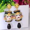 Orecchini ceramica Caltagirone, orecchini teste di moro con rose corallo bianco e gocce imitazione avorio , orecchini siciliani