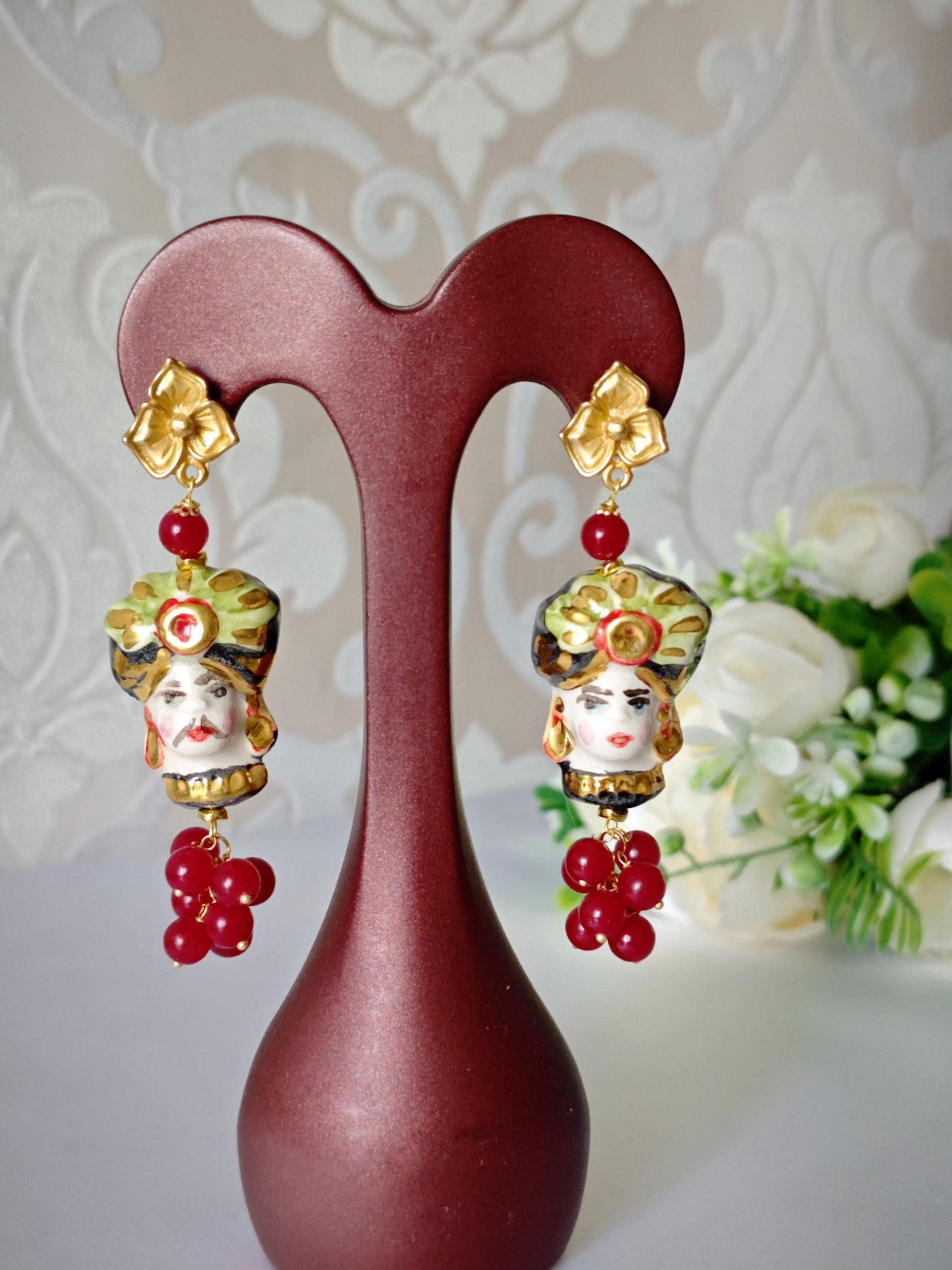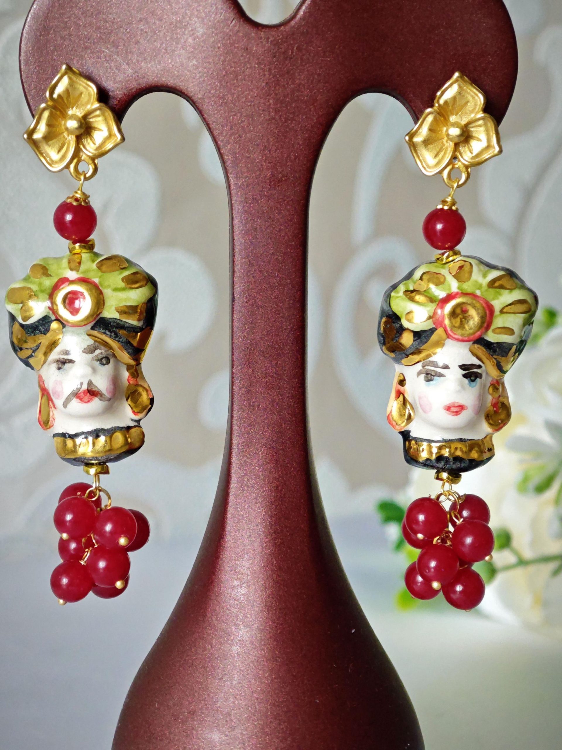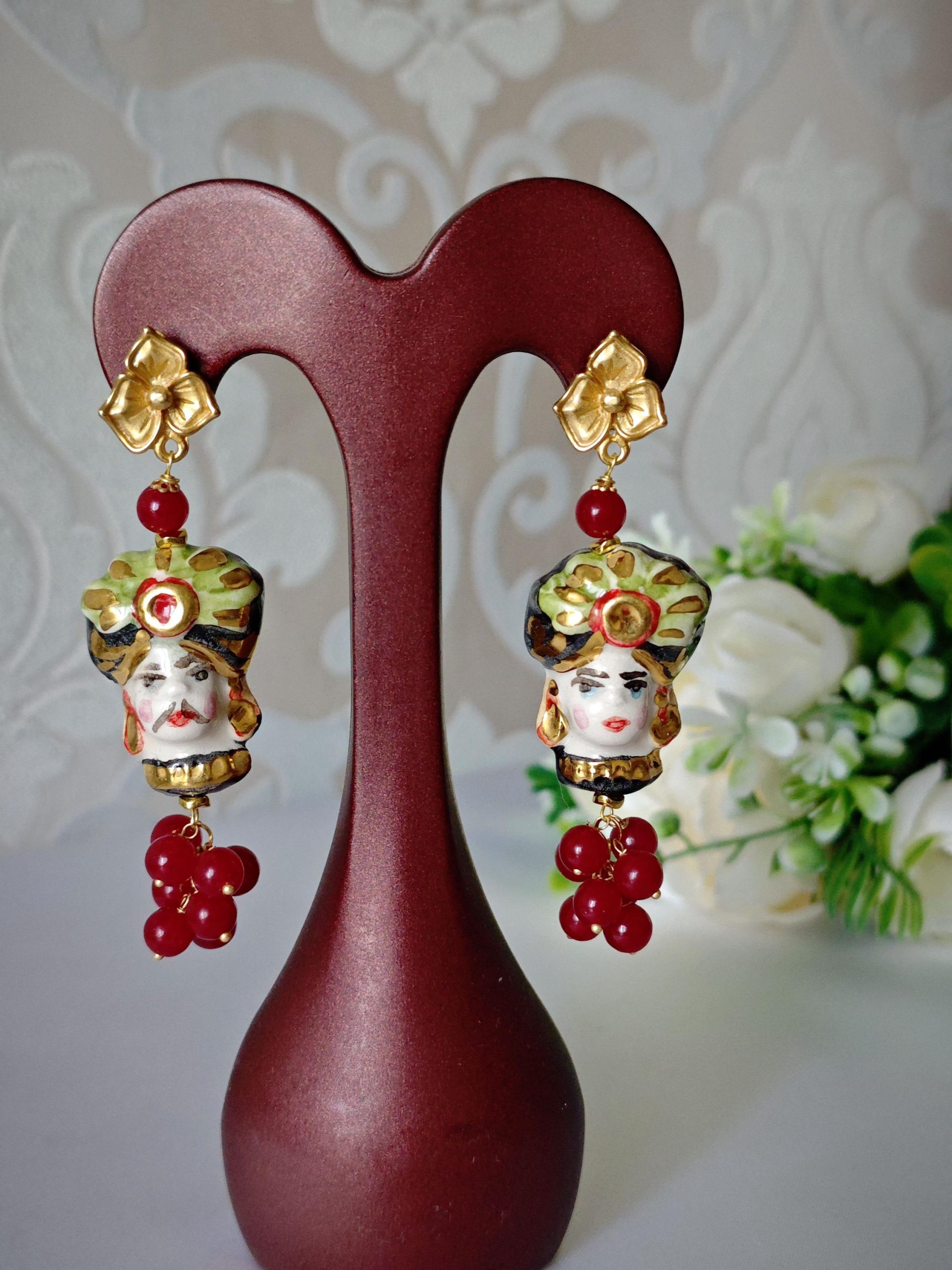 Categoria: Orecchini Teste di Moro Tag: agata_rossa, ceramica_Caltagirone, orecchini_agata, orecchini_ceramica, orecchini_fiori, orecchini_grappolo, orecchini_maxi, orecchini_pendenti, orecchini_pietre, orecchini_siciliani, orecchini_teste_moro, teste_di_moro