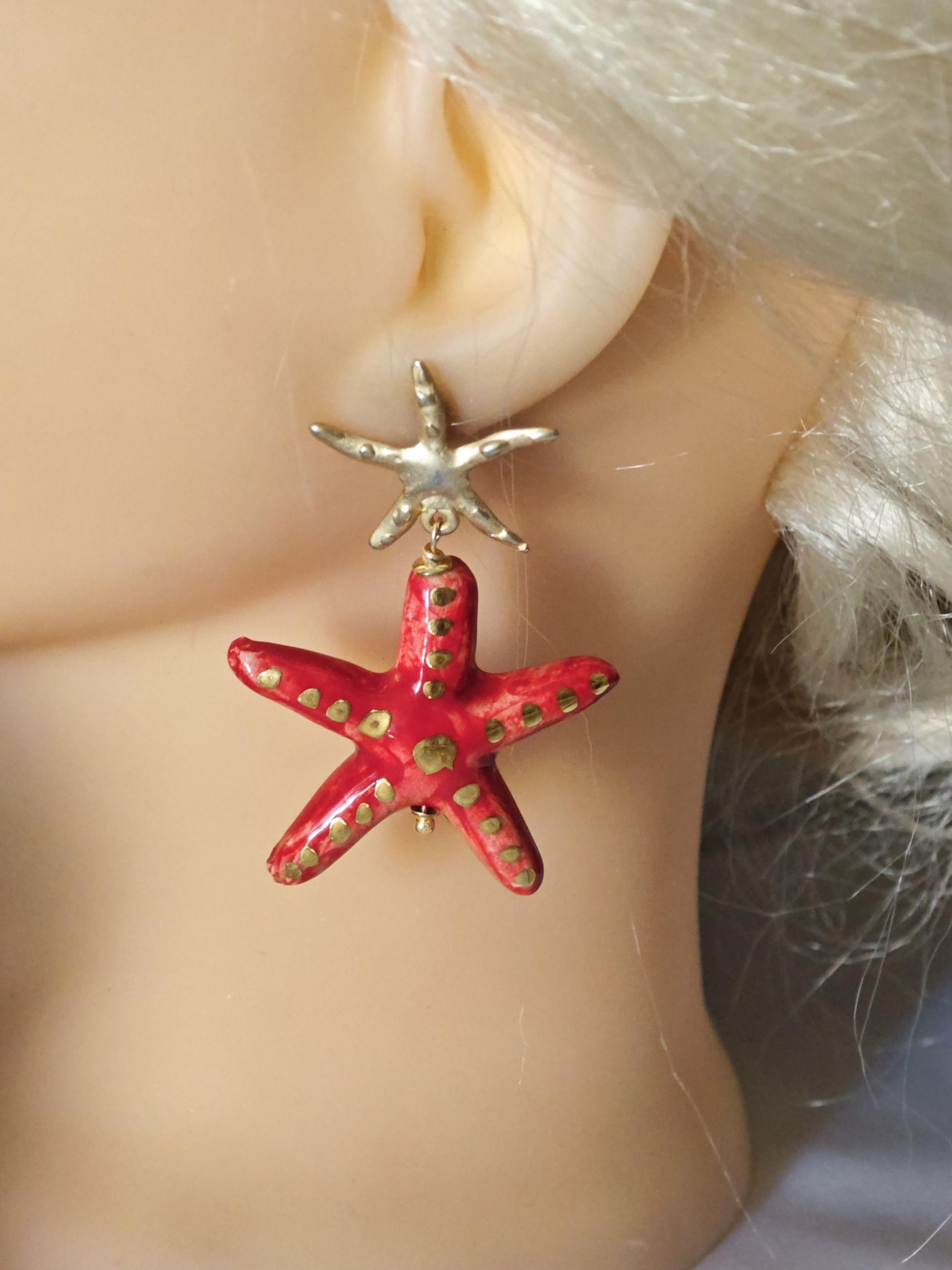 Orecchini stelle marine in ceramica di Caltagirone , orecchini siciliani