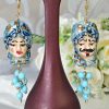 Orecchini ceramica Caltagirone  , orecchini teste di moro con fiori smaltati, orecchini siciliani