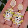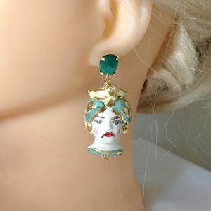 Orecchini teste di moro ceramica Caltagirone, orecchini pietre quarzo , orecchini siciliani