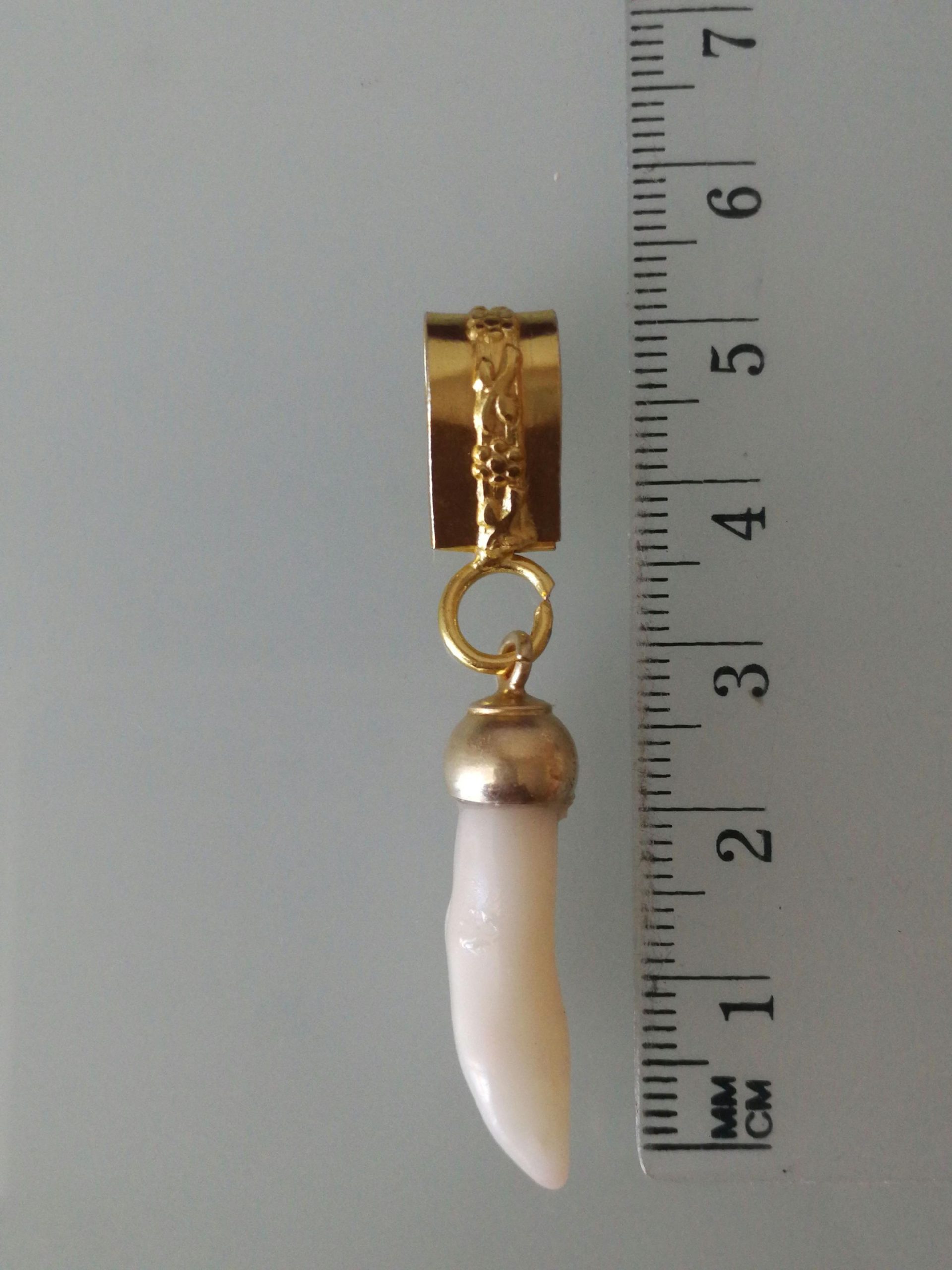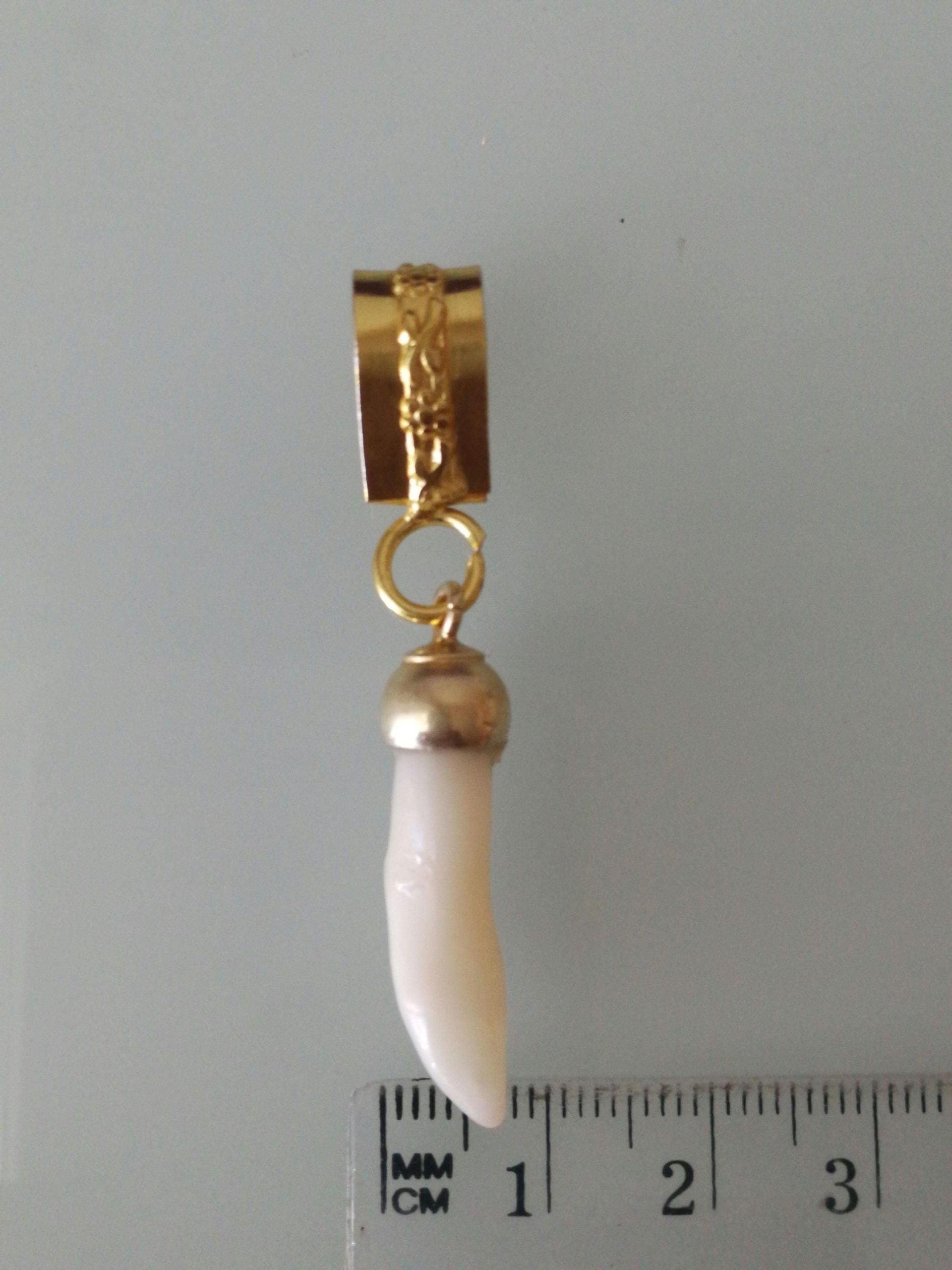 Rametto di corallo bianco naturale del Mar Rosso ,con ciondolo in ottone dorato .Misura Lunghezza totale 5 cm/ 2 inch. Larghezza 1 cm
