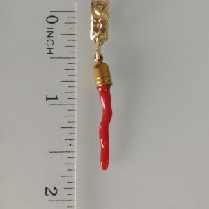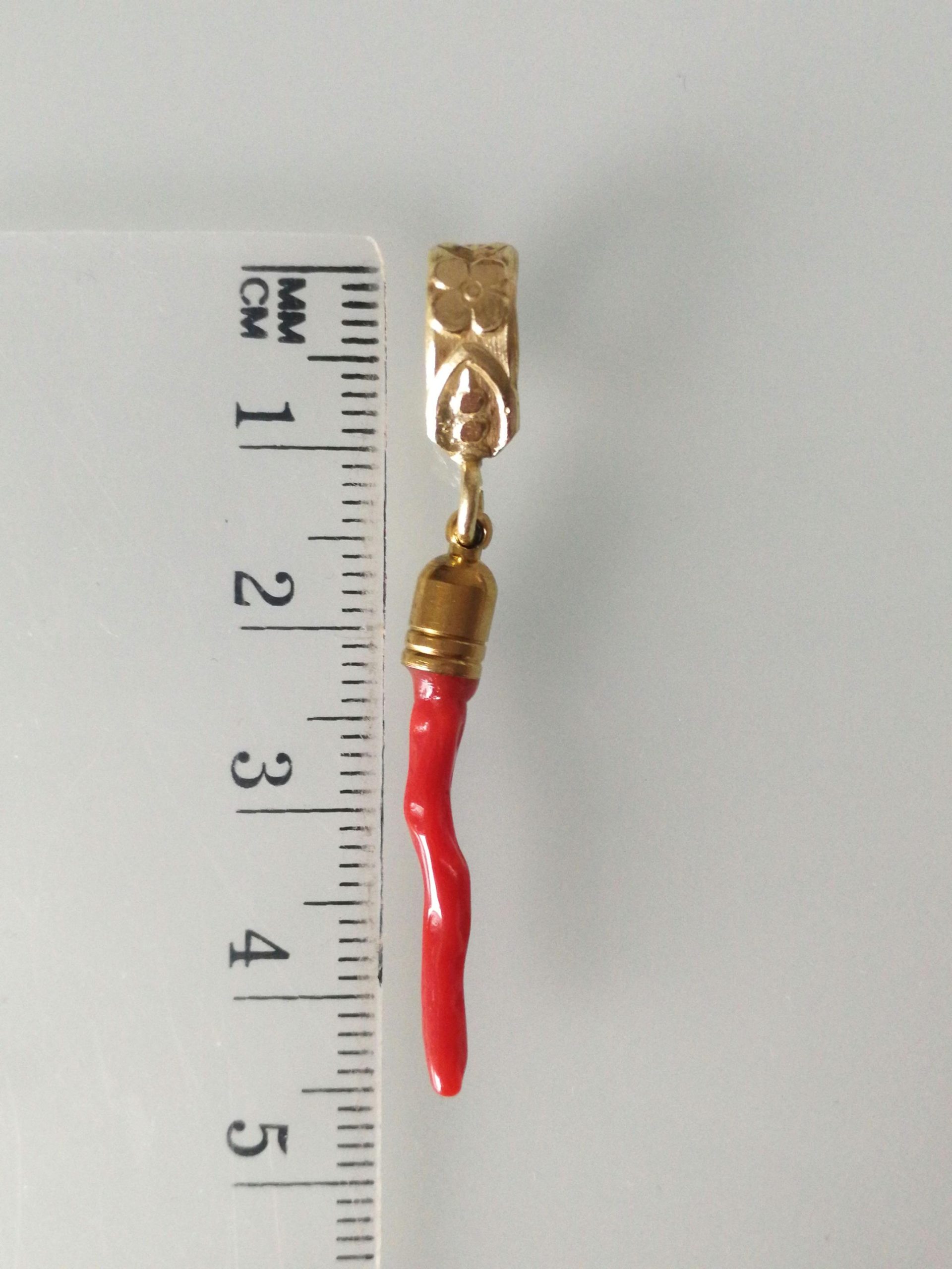 Ciondolo rametto corallo rosso del mediterraneo naturale con montatura in ottone dorato . Misura Lunghezza 4,5 cm/ 1 3/4 inch. Rametto corallo vero. Rametto portafortuna.
