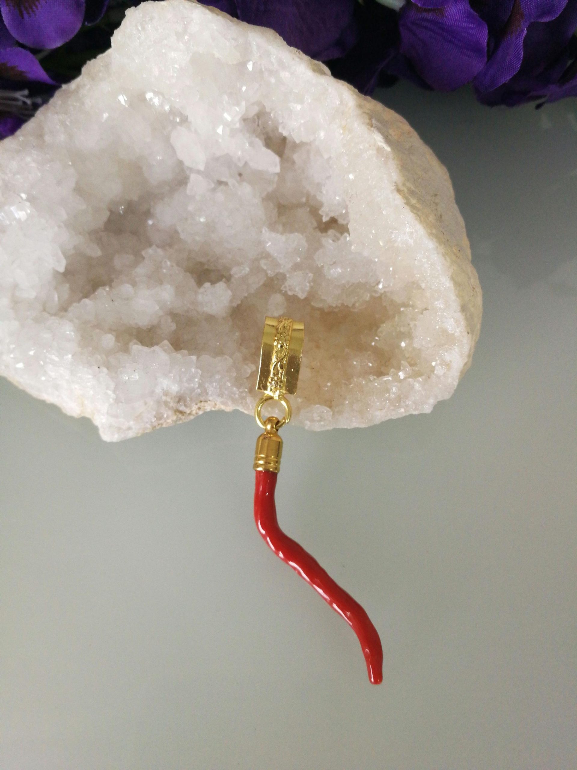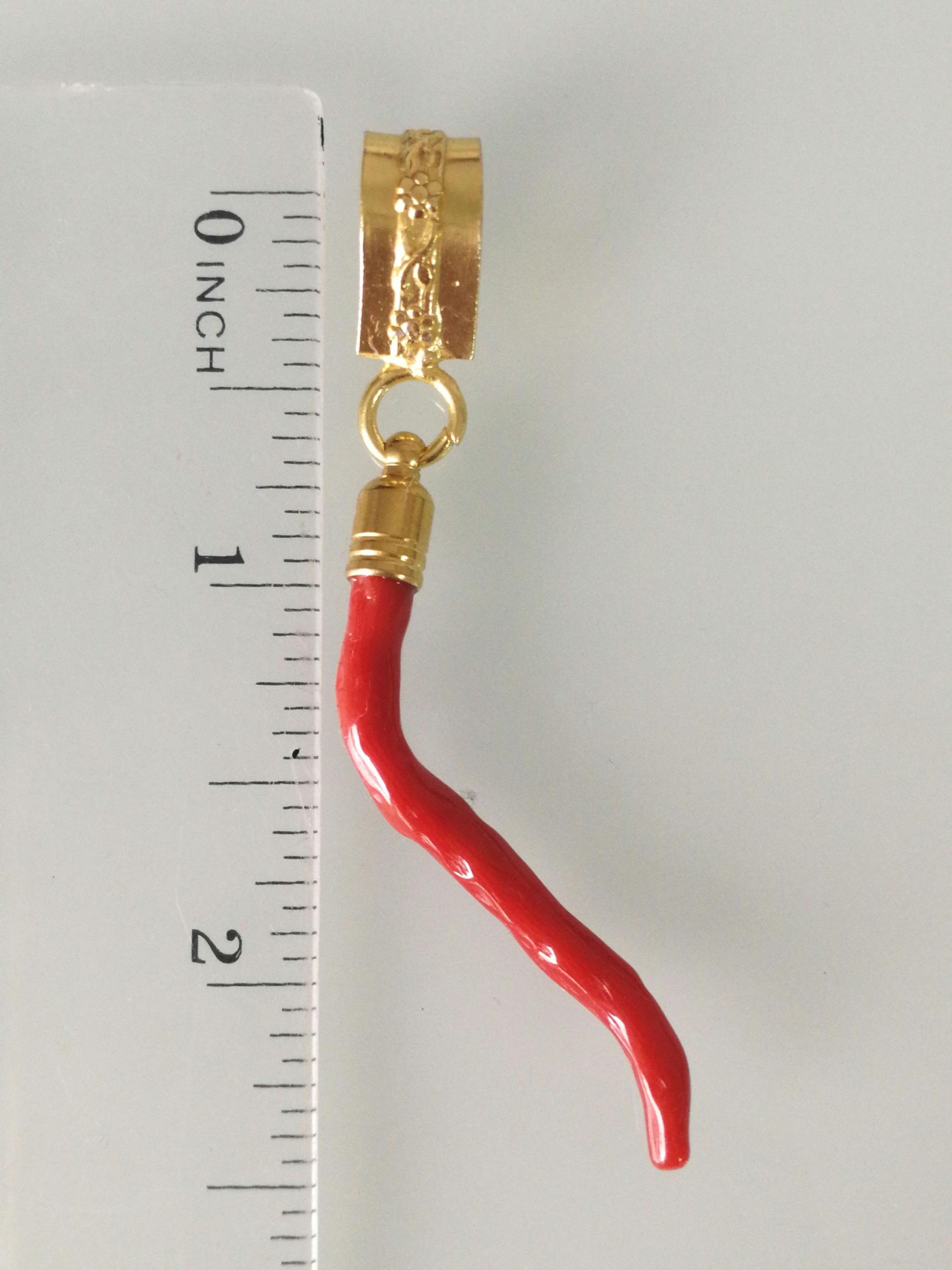 Ciondolo rametto corallo rosso del mediterraneo naturale maxi, con montatura in ottone dorato . Misura Lunghezza 6,5 cm/ 2,5 inch. Rametto corallo vero. Rametto portafortuna.