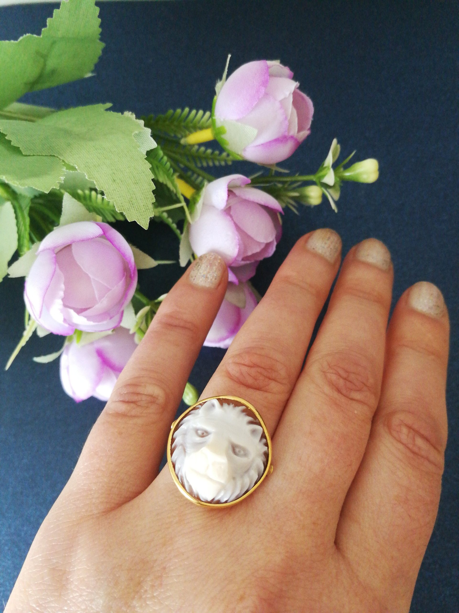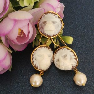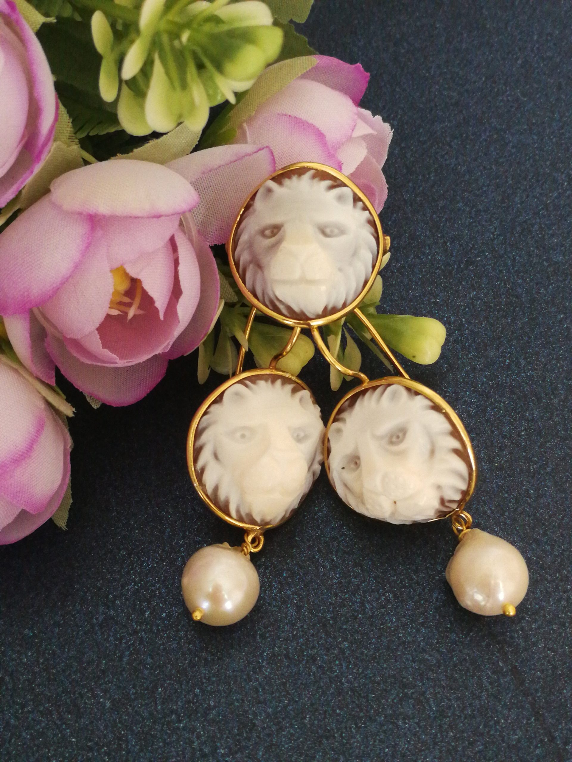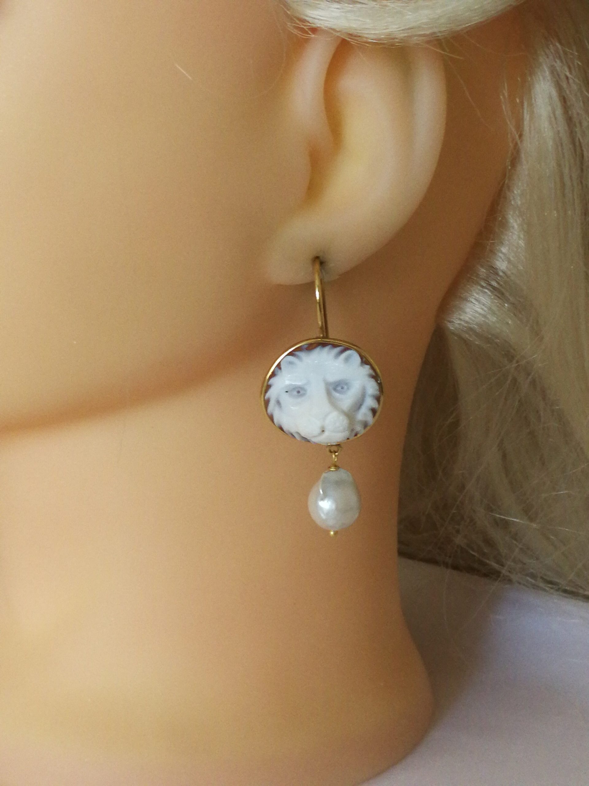 Set Orecchini anello cammeo conchiglia originale. Orecchini Leone .Orecchini argento con perle barocche bianche. Gioielli Italiani