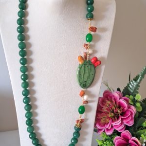 Collana ceramica Caltagirone con pietre dure agata verde, collana siciliana