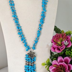 Collana pietre dure agata turchese, collana lunga a cravatta