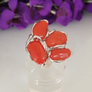 Anello corallo rosso naturale del mediterraneo. Anello argento. Anello fascia larga.Corallo vero.